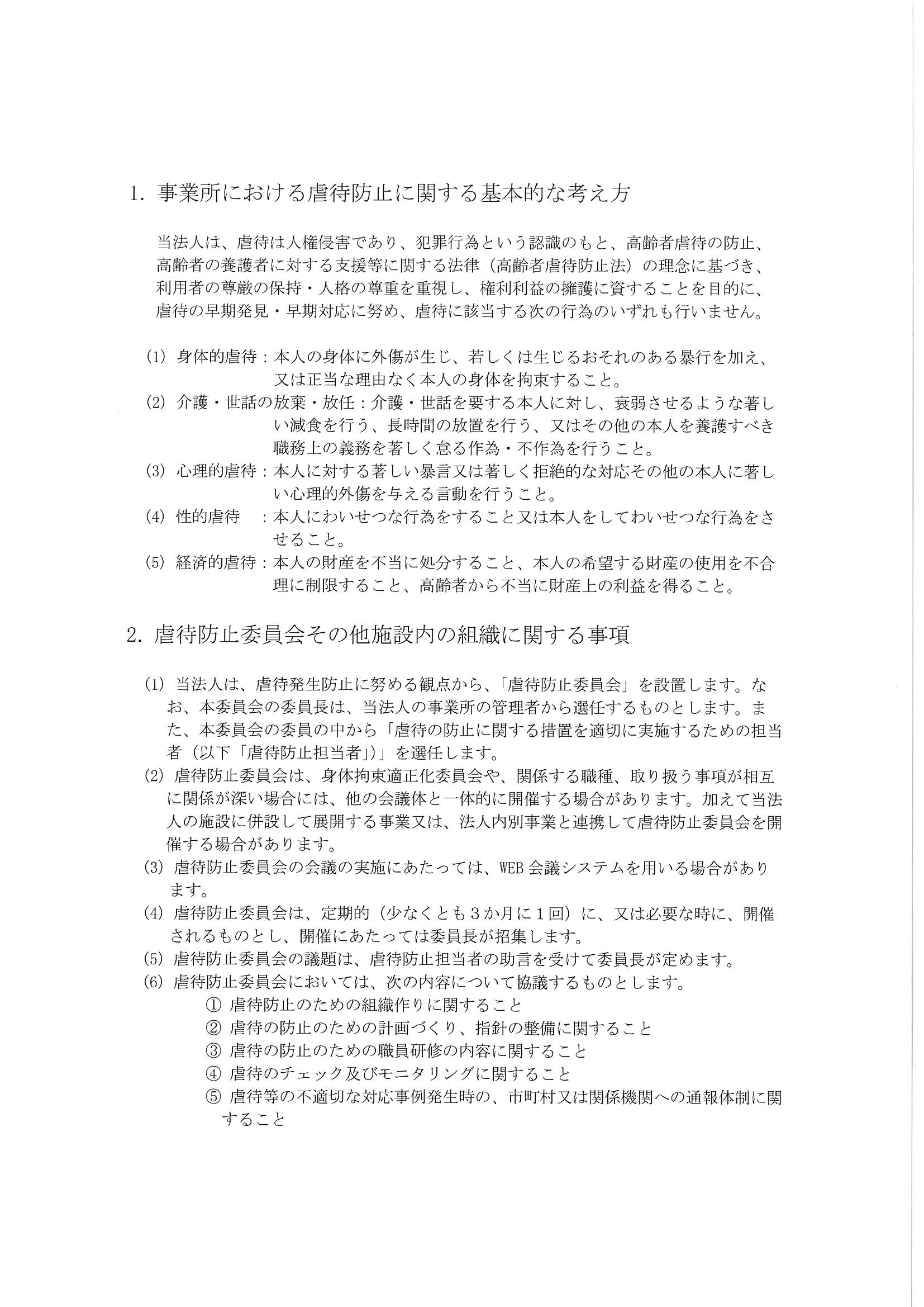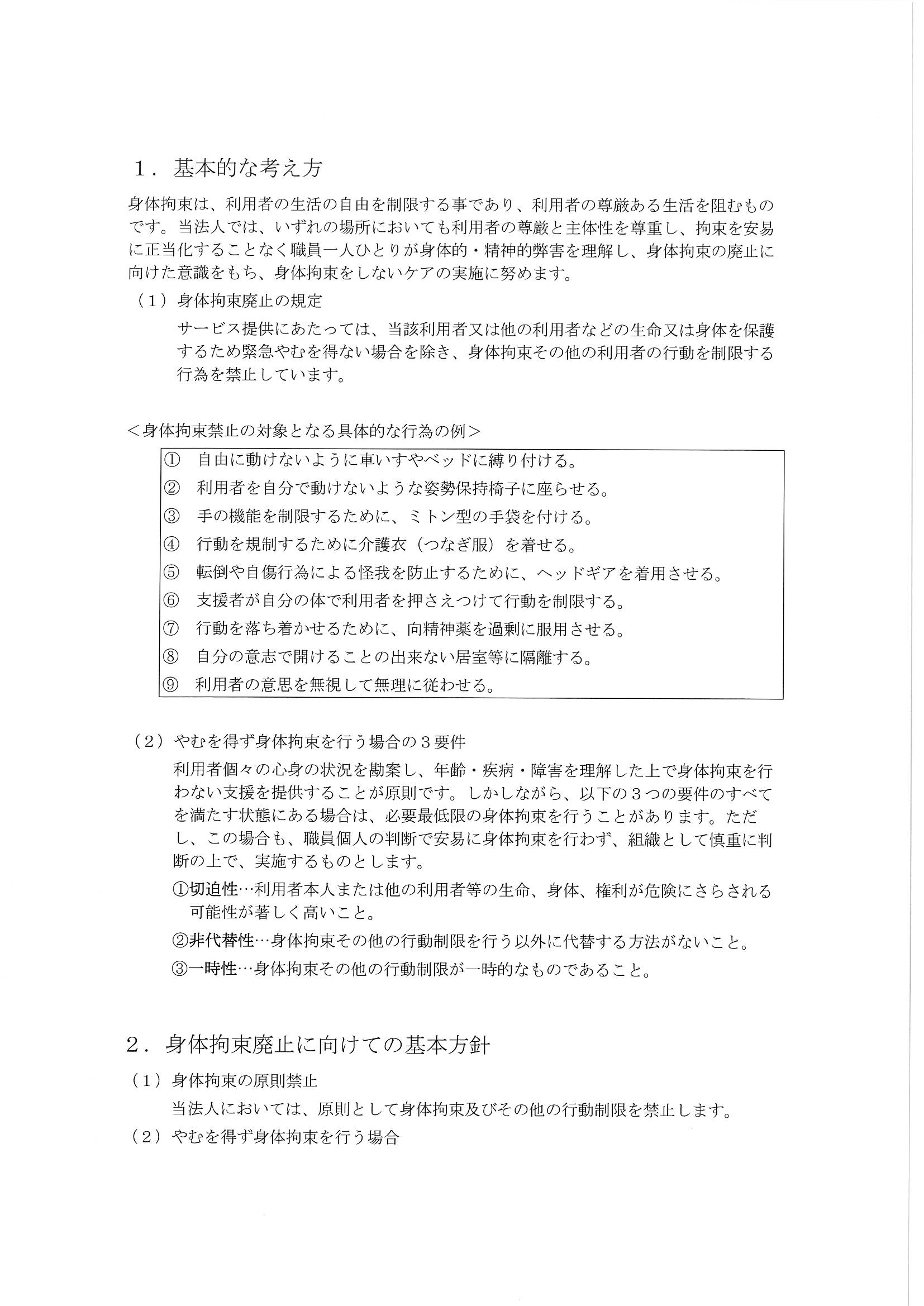 HOME > お知らせ > 高齢者虐待防止および身体拘束適正化に関する基本指針