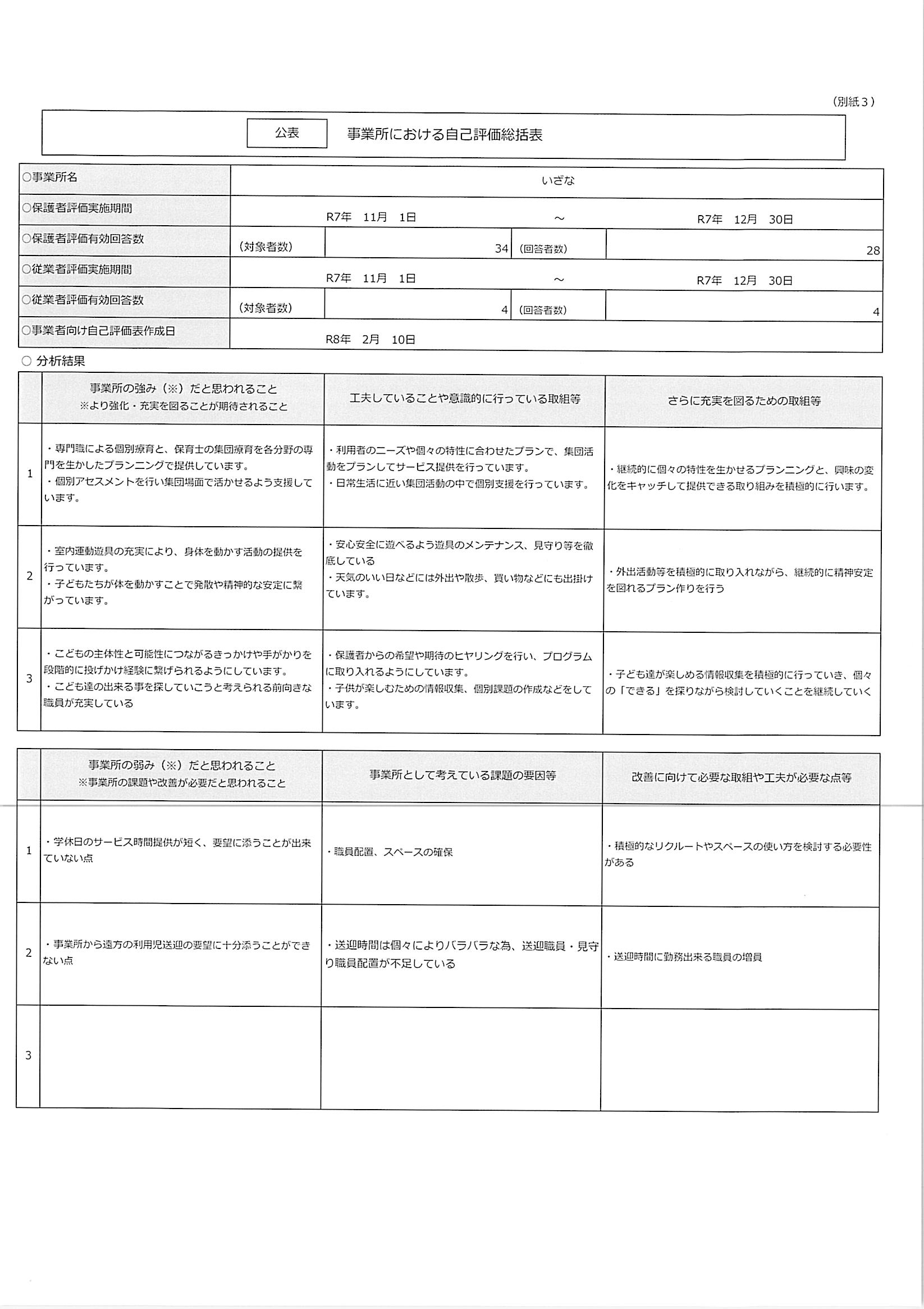 いざな(一般型)に係る支援プログラムおよび自己評価表の公表内容は下記の通りとなっております。