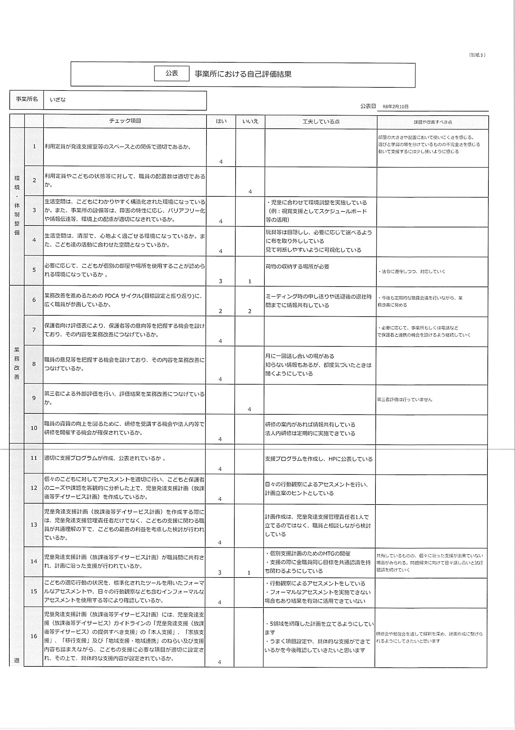 HOME > お知らせ > いざな(一般型)に係る支援プログラムおよび自己評価表の公表